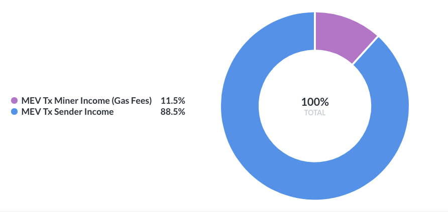 Fig 4: Extracted MEV Split between MEV Tx Sender and MEV Tx Miner (gas fees) since Jan 1 2020